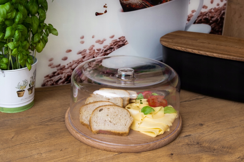 Drveni pladanj sa polipropilen poklopcem. Dimenzije: Ø30cm.