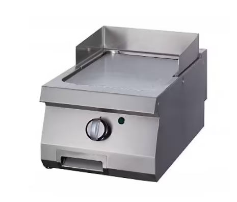 Na ovom robusnom roštilju hrana se peče na glatkom kromiranom roštilju debljine 15 mm od kaljenog nehrđajućeg čelika s mat završetkom. Roštilj je postavljen u nepropusnu udubinu. Ovaj plinski roštilj ima pilot svjetlo i ventil za plin s termoelementom. Možete ga koristiti s LPG-om ili prirodnim plinom. Praktična posuda za kapljice od 1,5 litre i zaštita od prskanja koja sprječava prskanje ulja čine ovaj roštilj sigurnim za upotrebu. Temperature se mogu postaviti između 100 i 300ºC pomoću sigurnosnog termostata. Ako radite s linijom kuhanja u svojoj kuhinji, ovaj roštilj savršeno se uklapa.