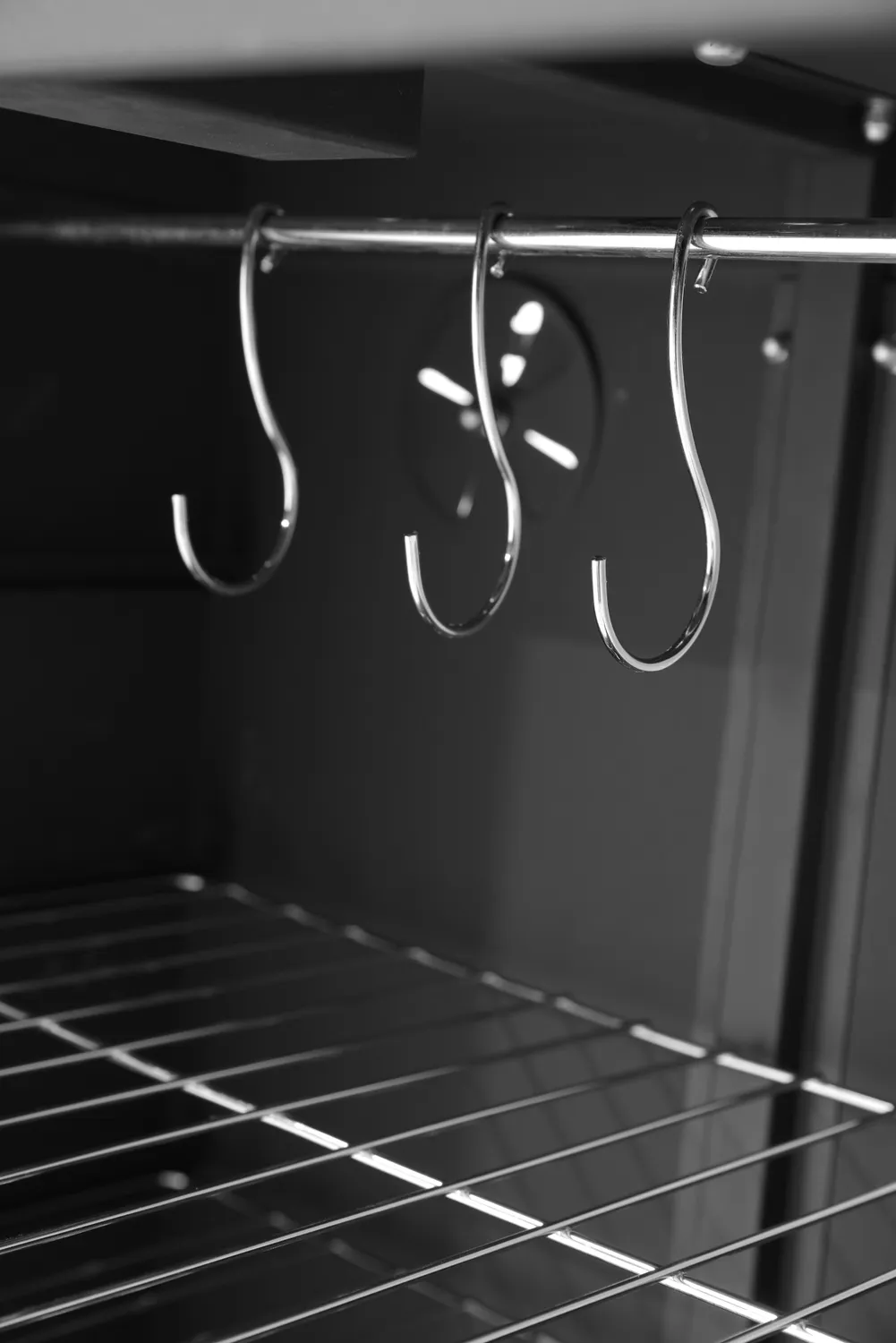 Isporučuje se s tri rešetke (400 x 279 mm) i tri kuke za meso.