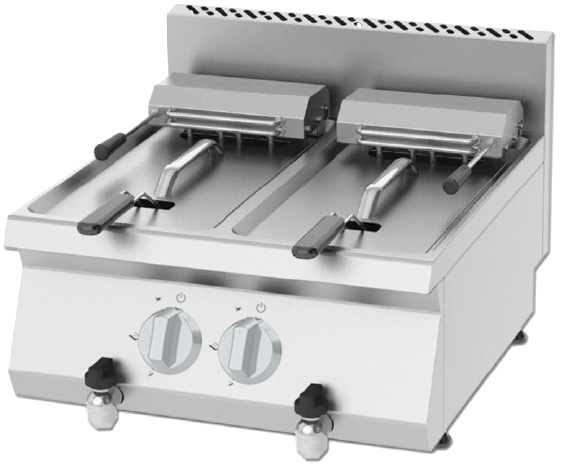 DOSTUPNO PO NARUDŽBI! Dimenzije: 600x620x300mm Jačina: 14kW Priključak: 400V / 50Hz Radna temperatura: 100x180°C Kapacitet bazena: 10+10lt * Sa česmom za ispust ulja * U slučaju pregrijavanja ulja, granični termostat zaustavlja grijače elemente i osigurava siguran rad. * Dug vijek trajanja, lako se čisti i higijenski zbog konstrukcije od nehrđajućeg čelika. * Sigurnosni sistem koji isključuje energiju uključenih grijača, kako bi se osigurala maksimalna sigurnost kroz održavanje i čišćenje dok je sistem grijanja podignut .