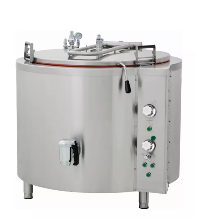 Ovaj kazan za kuhanje radi na električnoj struji (400V). Dvostruki zid unutar može se napuniti vodom, a izvor topline smješten je izravno ispod kotla. Kao rezultat toga, stvara vrlo učinkovit sustav neizravnog grijanja. Sigurnosni termostat štiti od niske razine vode kako bi se spriječilo brzo sagorijevanje hrane. To čini kazan savršenim za tekuća jela ili hranu koju kuhate u vodi, poput riže, krumpira, mesa i povrća. Zahvaljujući dodatnom izolacijskom materijalu, gubitak topline i potrošnja energije također se održavaju na minimumu.
