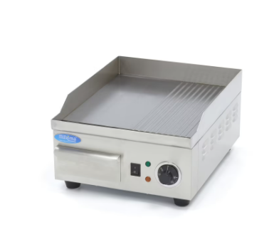 Temperaturu na ovom roštilju možete postaviti između 50 i 300°C. Aparat također ima indikatorsko svjetlo koje pokazuje kada je roštilj dostigao pravu temperaturu i spreman je za upotrebu. Unatoč visokim temperaturama, ovaj profesionalni roštilj je siguran za korištenje. Opremljen je visokim štitnicima od nehrđajućeg čelika kako bi se spriječilo prskanje ulja. Roštilj je vrlo jednostavan za korištenje. Uključite ga prekidačem, premazujte površinu roštilja uljem, i kada se postigne prava temperatura, stavite proizvode na roštilj.