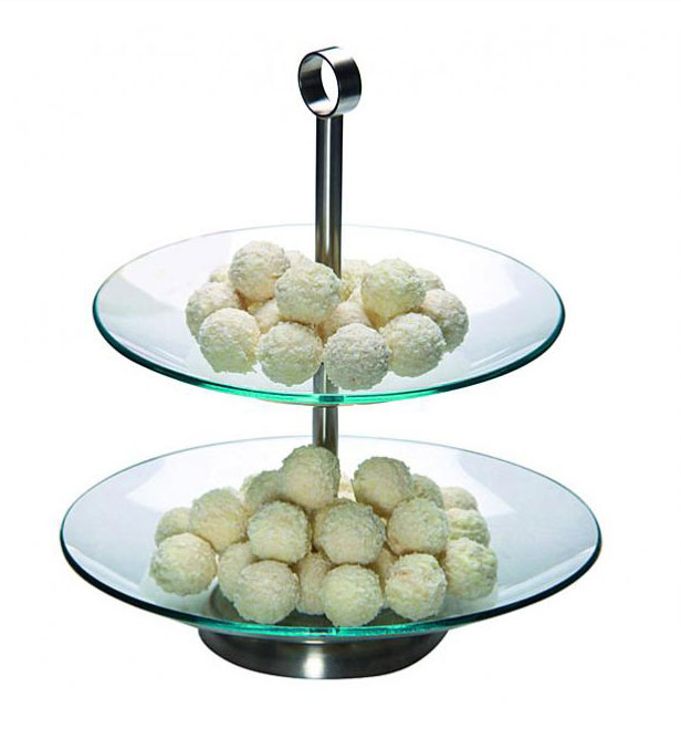 Etažer - staklo Idealan za slastice i voće! Dimenzije: 21+26cm.