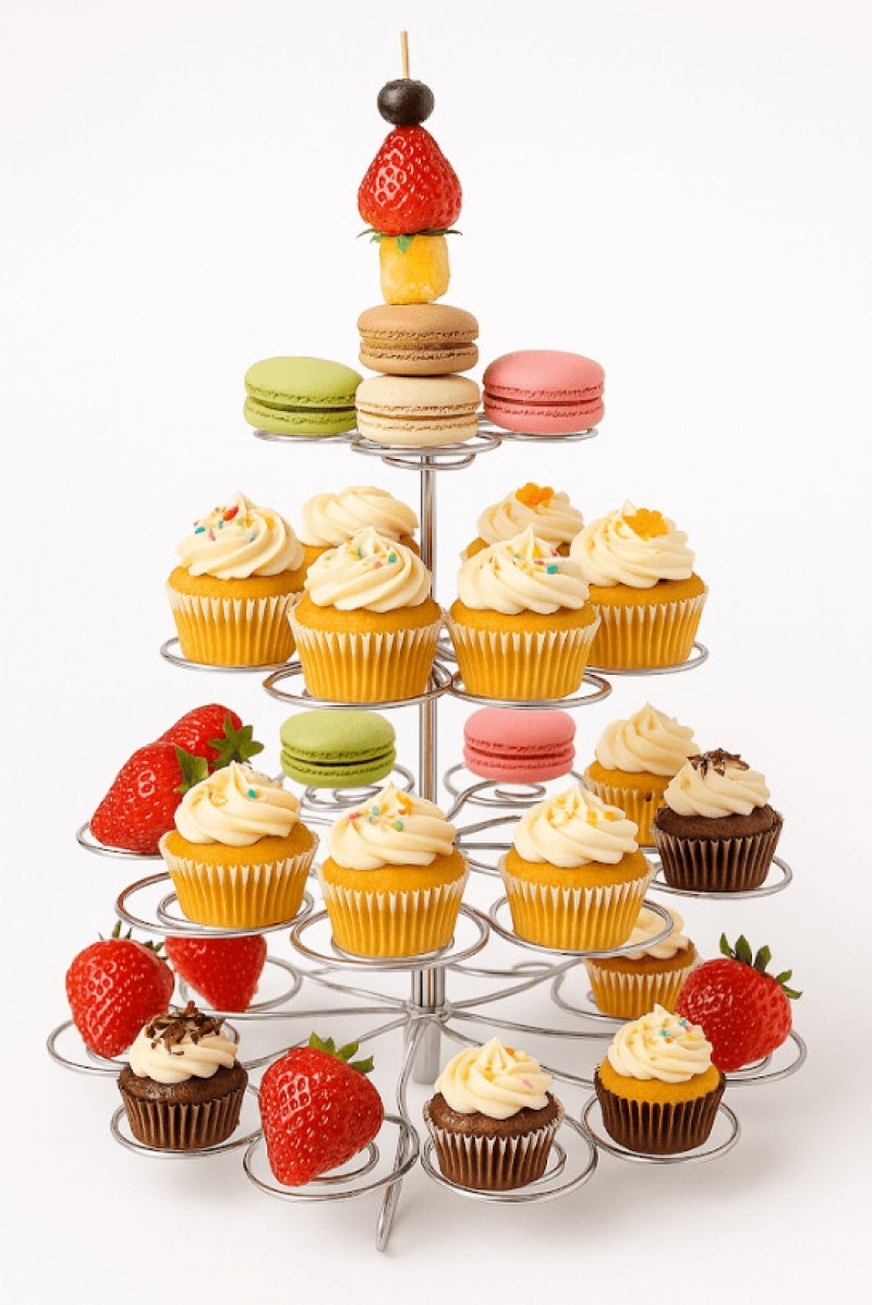 Inox etažer - 3 etaže Dimenzije: 30x31cm.