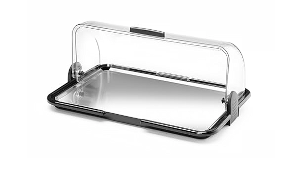 Dimenzije: 465x315x195mm - za posluživanje sira, hladnih narezaka, hljeba, kolača ili malih zalogaja - izrađen od polipropilena s umetkom od inoxa, - prozirni rolltop poklopac izrađen od polistirena, - savršena prezentacija, - praktičaj pristup serviranoj hrani s obje strane vitrine, - dvije funkcije: za hlađenje i grijanje, - elementi za hlađenje/grijanje postavljeni su ispod inox umetka kako bi održali temperaturu u vitrini, te tako održali i hranu svježom i izgledom lijepom - jednostavan za čišćenje - može se prati u mašini za suđe.