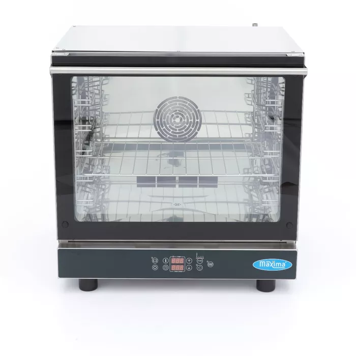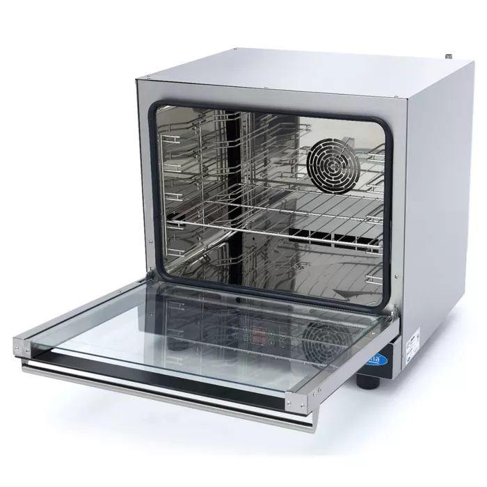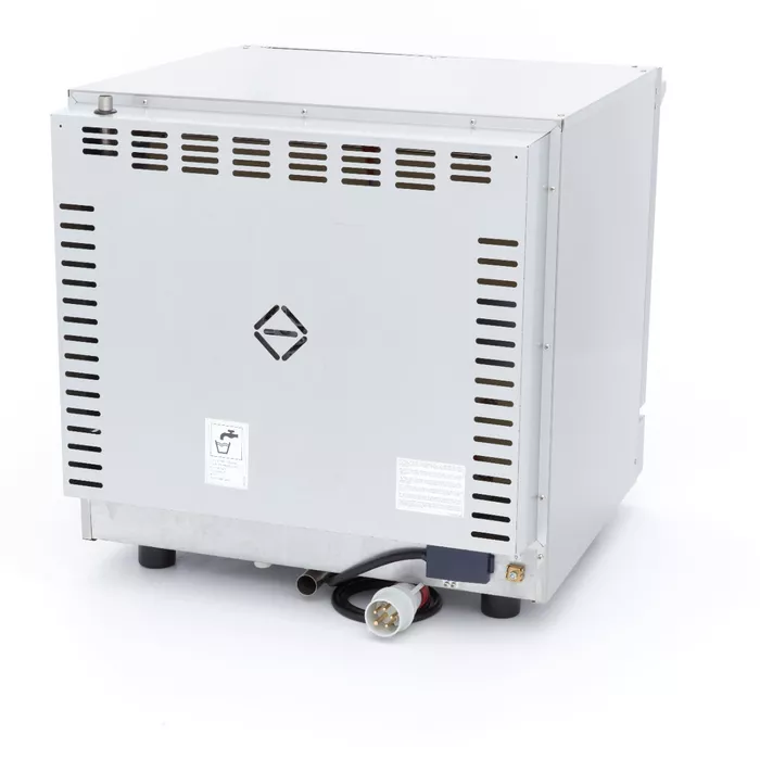 Ova pećnica s kombiniranim parnim sistemom ima snažne grijače od nehrđajućeg čelika kako bi osigurala potpunu i učinkovitu distribuciju topline, tako da meso i riba kuhaju ravnomjerno. Osim toga, pećnica s kombiniranim parnim sistemom opremljena je ventilatorom s funkcijom reverzibilnog rada i dvostrukim atermičkim staklom. Vrata se vrlo lako podešavaju, a brtva na vratima izrađena je od silikona koji je siguran za hranu. Unutarnje svjetlo olakšava praćenje napretka kuhanja. Ovaj uređaj dolazi s dovodom vode s ventilom za proizvodnju pare, kao i odvodnom cijevi. To je potpuno prilagodljiv uređaj s jednostavnim digitalnim prikazom i dodirnim gumbima. Dostupni su različiti prednastavljeni programi s tri podesive faze, uključujući razinu pare, temperaturu i vrijeme. Možete prilagoditi prednastavljene programe pomoću gumba za fazu. Također je moguće prilagoditi prednastavljeni program i spremiti ga u memoriju pećnice s kombiniranim parnim sistemom.