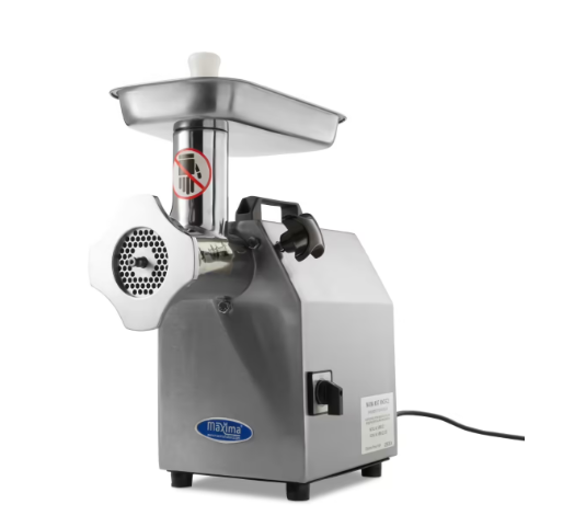 Kućište mlina za meso, zdjela, spiralna vijka i prsten za vijak izrađeni su od nehrđajućeg čelika. Oštrice i diskovi su napravljeni od kaljenog čelika. Osim punilice za kobasice, također dobivate sljedeće dodatke: čep, dva križna noža i ploče s rupama od 6 i 8 mm svaka. Ulaz je širine 5,5 cm, a gornja taca je uključena kako biste mogli pripremiti koliko god mesa vam je potrebno za mljevenje. Mlin za meso može se postaviti u dvije pozicije: naprijed i nazad. Lako može proizvesti 220 kg mljevenog mesa na sat. Idealno je ako vam treba velike količine mljevenog mesa ili punjenja u kuhinji. Mlin za meso je jednostavan za upotrebu. Prvo, postavite odgovarajuću ploču, a zatim jednostavno uključite uređaj. Koristite priloženi čep kako biste gurnuli meso prema oštricama. Mljeveno meso može se prikupiti u tacni ili zdjeli i spreman je za upotrebu.