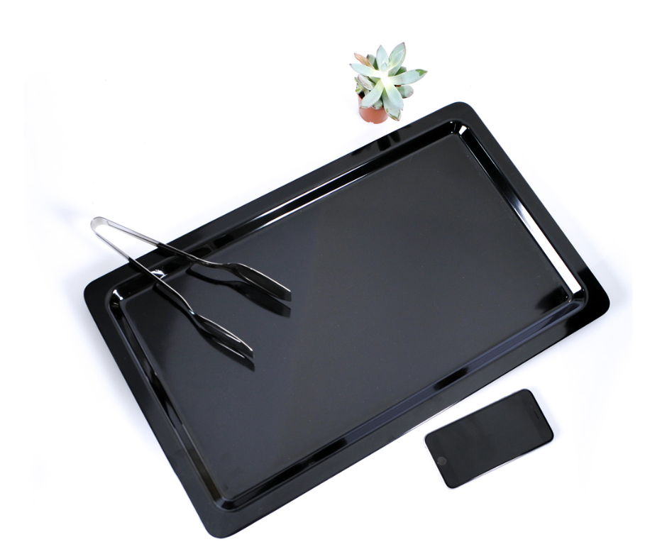 Dimenzije: GN1/1 (53x32.5cm) - dubina 2cm Boja: crna Materijal: melamin.