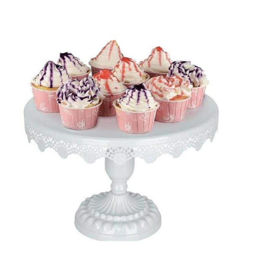 Stalak za mafine i kolačiće Materijal izrade: metal Boja: bijela Dimenzije: 24x16cm.