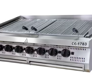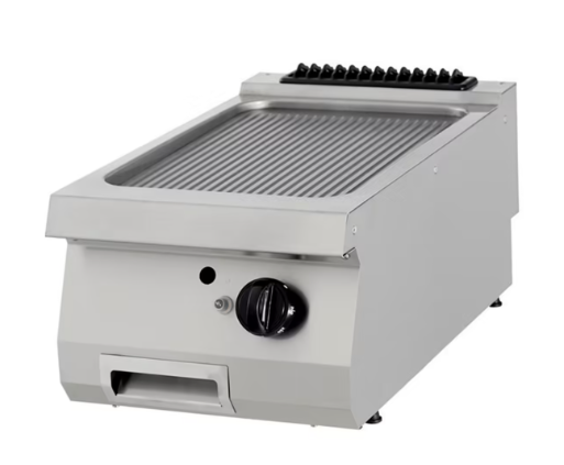Ovaj roštilj visoke kvalitete posebno je izrađen za upotrebu u liniji kuhanja. Koristeći samo kvalitetne materijale, idealan je za dnevnu intenzivnu upotrebu. Rebrasta roštilj ploča izrađena je od čelika debljine 15 mm i ima elegantan kromirani završetak. Ispod nje nalazi se velika ladanjska posuda od 1,5 litre koja pomaže pri prikupljanju masnoće tijekom procesa kuhanja i održava sve uredno i čisto. Lako se može ukloniti radi čišćenja.