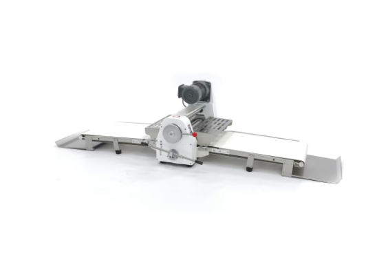 Zahvaljujući praktičnoj transportnoj traci posebnoj za preradu hrane, možete obraditi velike količine tijesta. Valjak je vrlo korisnik i ima spremnik na vrhu za brašno. Na taj način tijesto ne zalijepi za transportnu traku i valjak. Za podešavanje prave debljine tijesta koristite gornju ručku. Pomoću ove poluge birate debljinu između 0 i 35 mm. Čim stavite tijesto na transportnu traku, donjom ručkom provucite tijesto kroz valjak. Na drugoj strani valjka, tijesto izlazi ravnomjerno valjano.