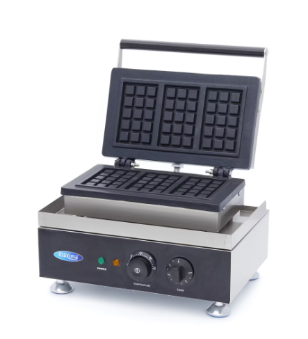 Ovaj klasični aparat za vafla štedi vam puno vremena i omogućava vam brzo i jednostavno pravljenje tri prava belgijska vafla istovremeno. Pravi je resurs za svaku poslastičarnicu, kafić ili upotrebu na tržištima i sajmovima. Poslužite ukusne, lagane i prozračne vafla posute šećerom u prahu ili ukusnim trešnjama i šlagom. Zahvaljujući snažnom grijaču u aparatu za vafla, tava se brzo zagrijava tako da možete početi sa pripremom za nekoliko minuta. Grijač također osigurava da ploče ostanu tople tokom upotrebe. Pogodan je za intenzivnu svakodnevnu upotrebu u svakoj kuhinji za ugostiteljstvo.